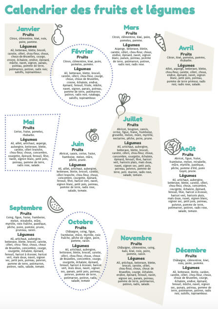- Repenser ses menus, en utilisant les fruits et légumes bio de saison produits localement, parce que « Manger bio et local c’est idéal !«